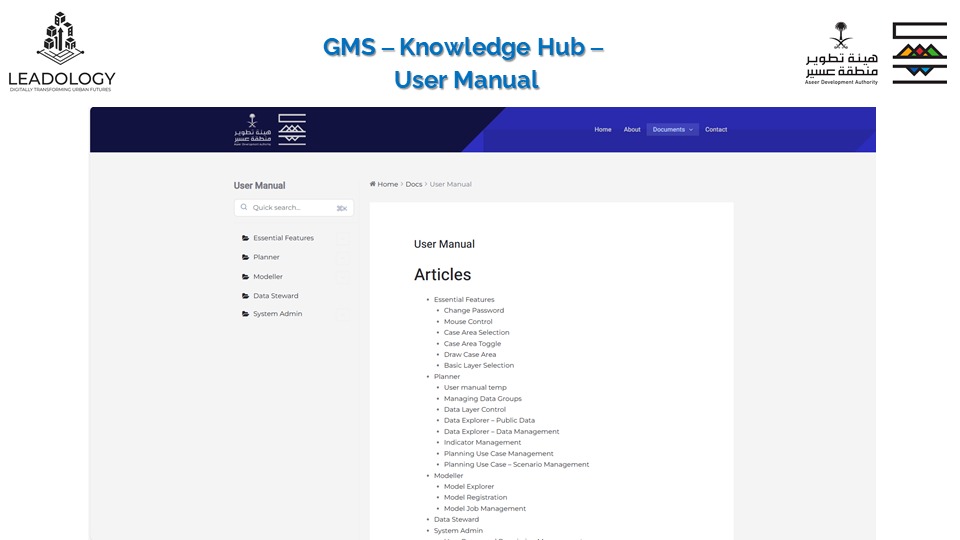 The GMS System Platform is the core product of the GSMSPD project, providing ASDA with a unified geospatial planning system. It integrates data, indicators, models, and scenarios into one source of truth, enabling smarter regional planning and evidence-based decision-making.